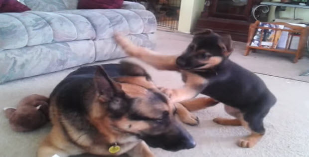 This Huge German Shepherd Playing With Puppy Is Absolutely Adorable