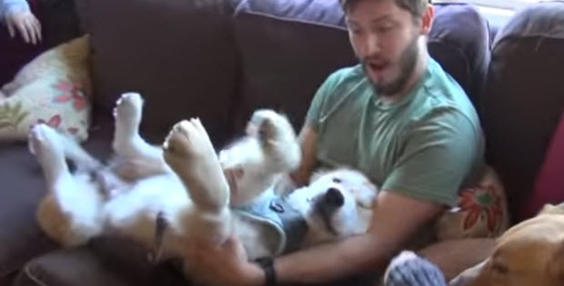 This Lab Can’t Leave Anybody Indifferent! Even People That Don’t Like Dogs Will Love This Labrador. This is a true big puppy playing in the bathtub and it