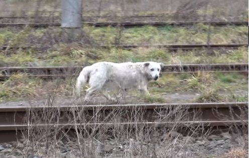A white dog was found in a railroad station. He was dirty, hungry, and undeniably thirsty. He’s been here, living on his own, and nobody knows where it