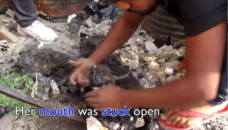 So, they did what they had to do – they have to take the whole slab of tar with them just to pick the three puppies out. They had to dig the tar-covered ground and use a stick.