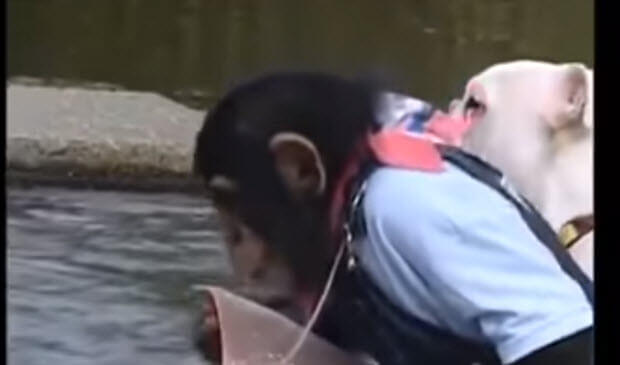 This Monkey Helps Puppy To Cross Over The River Is Beyond Hilarious