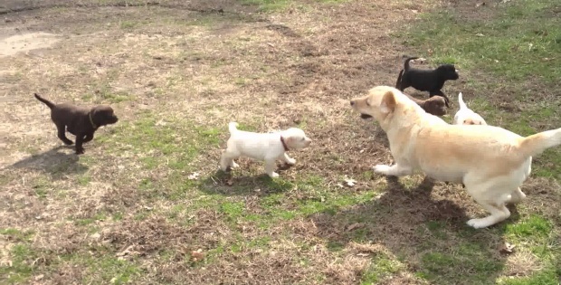 These labradors are so well behaved it really looks like they were born to do this. They are waiting for instructions with anticipation and happy to run and