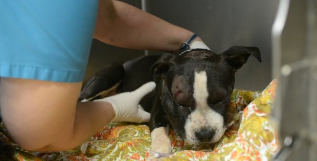 A sweet bulldog mix was found homeless in September of 2015 by her rescuers who immediately knew that had to save her. She had lost all of her